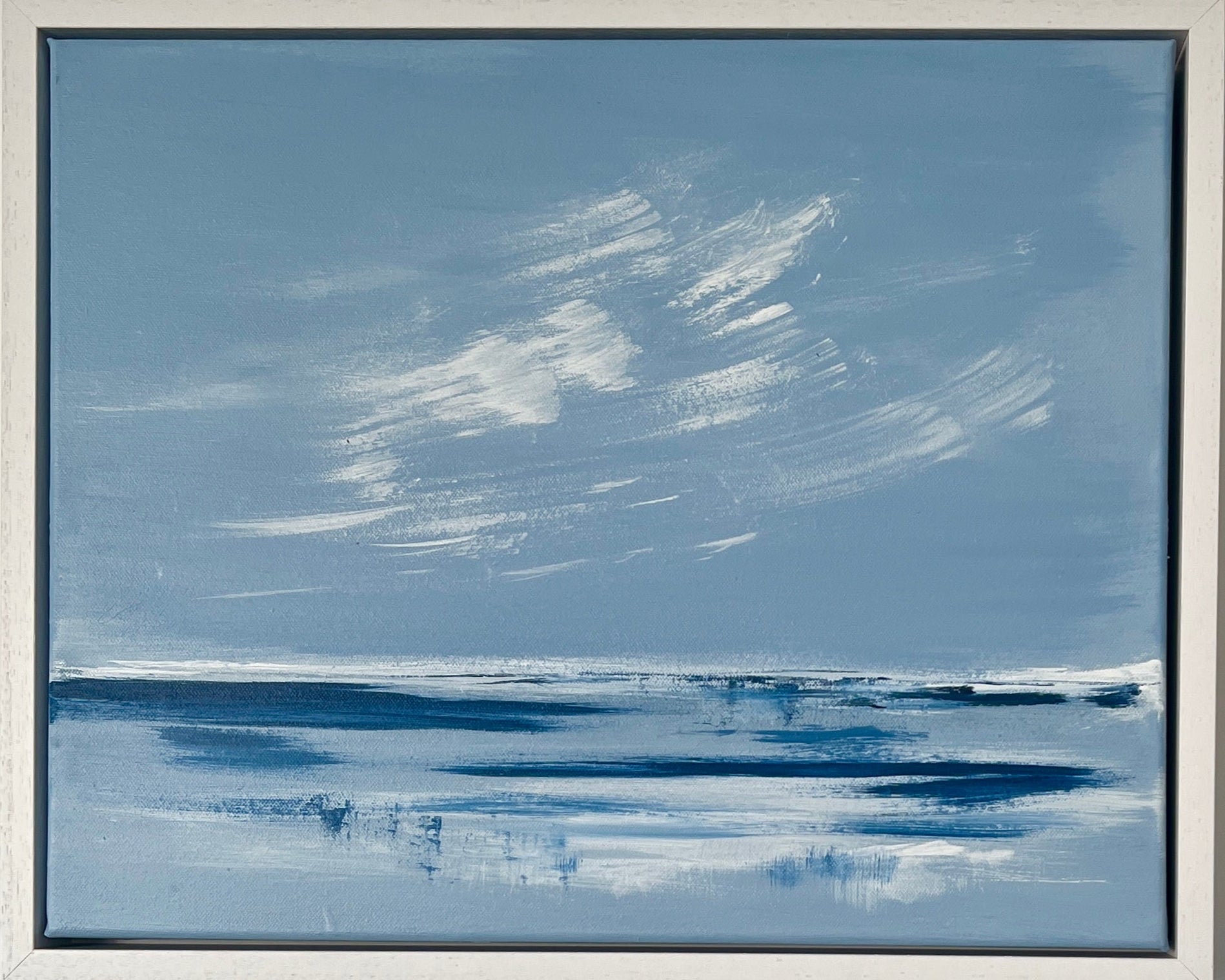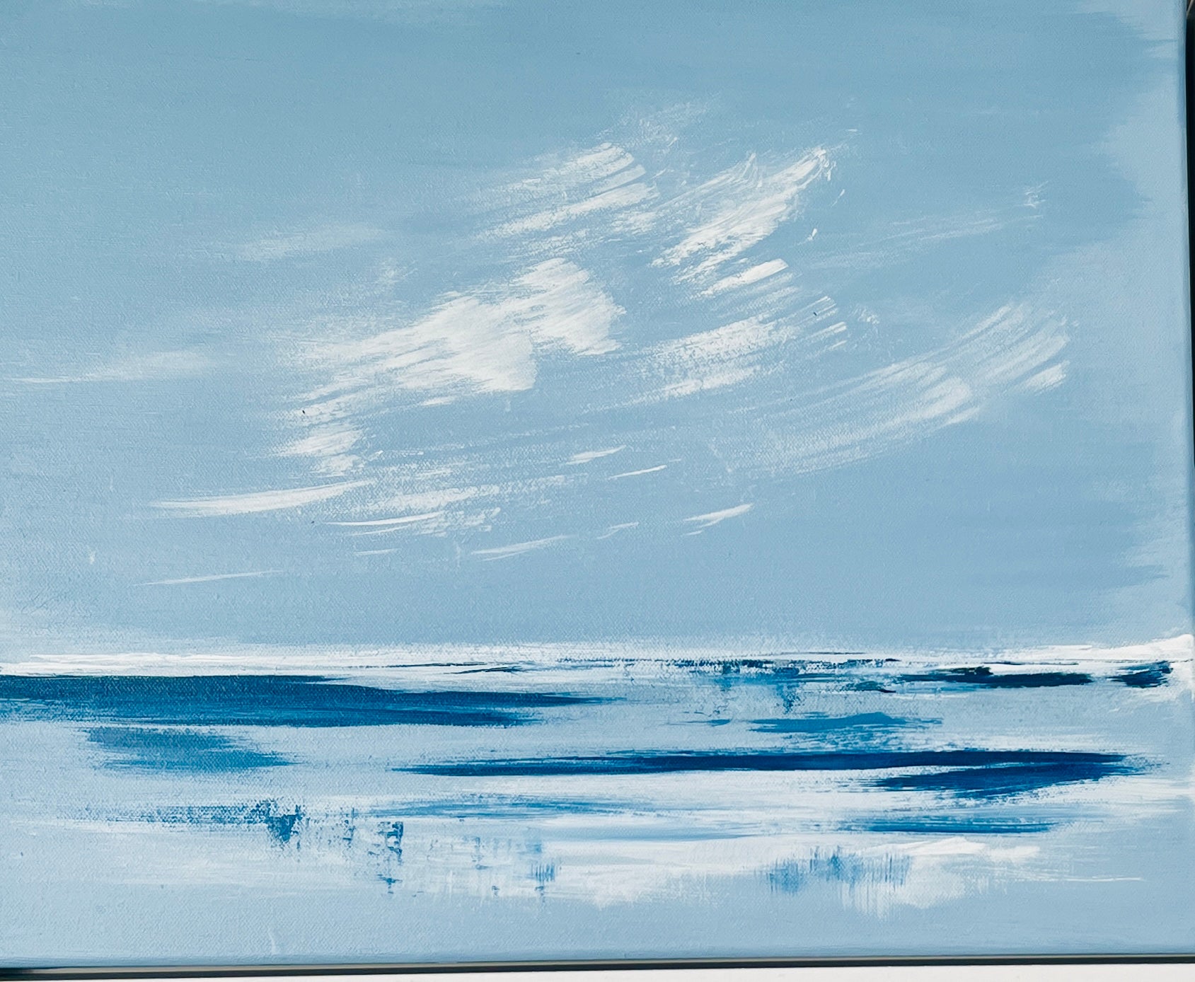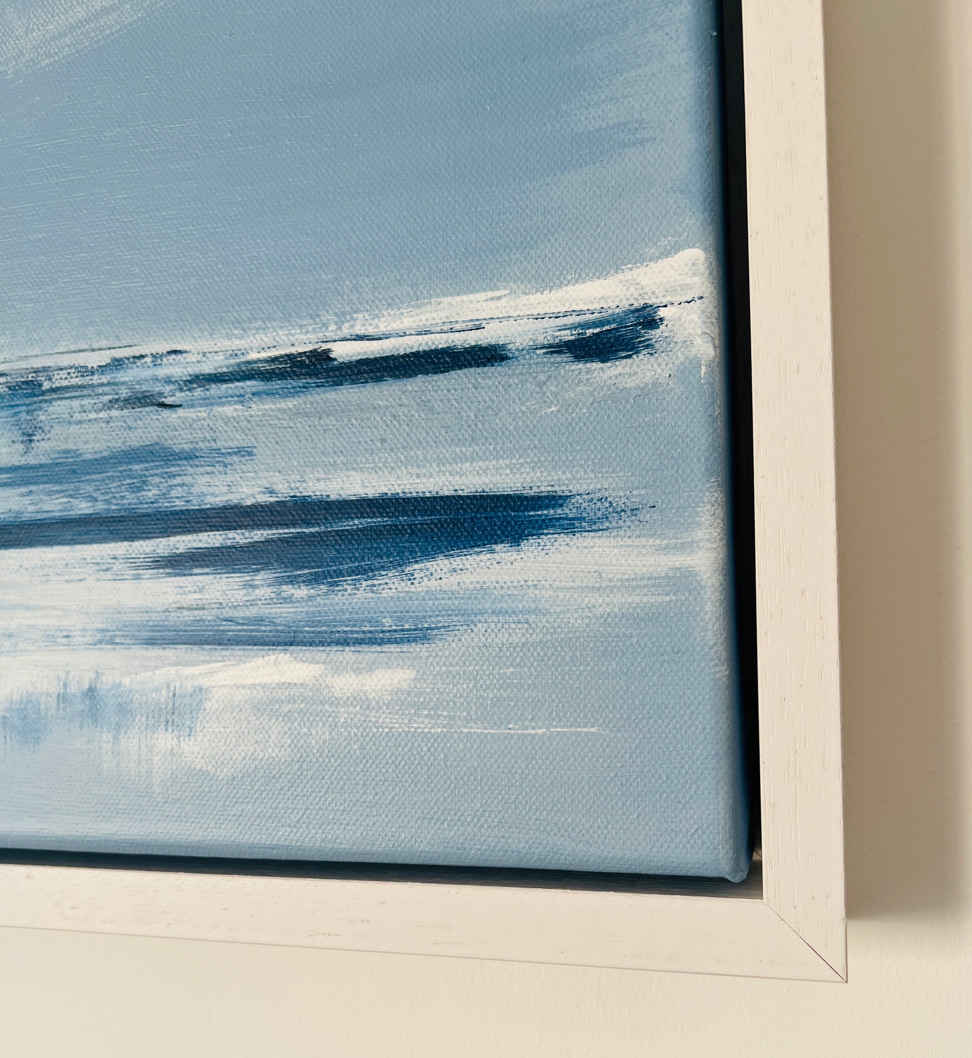 A Symphony of Blues invites a sense of calm with its soothing shades of Blue. The gentle brushwork creates a sense of atmosphere , evoking the tranquility of a vast sky meeting the horizon . The modern composition balances simplicity and depth , making it a versatile piece for any space.